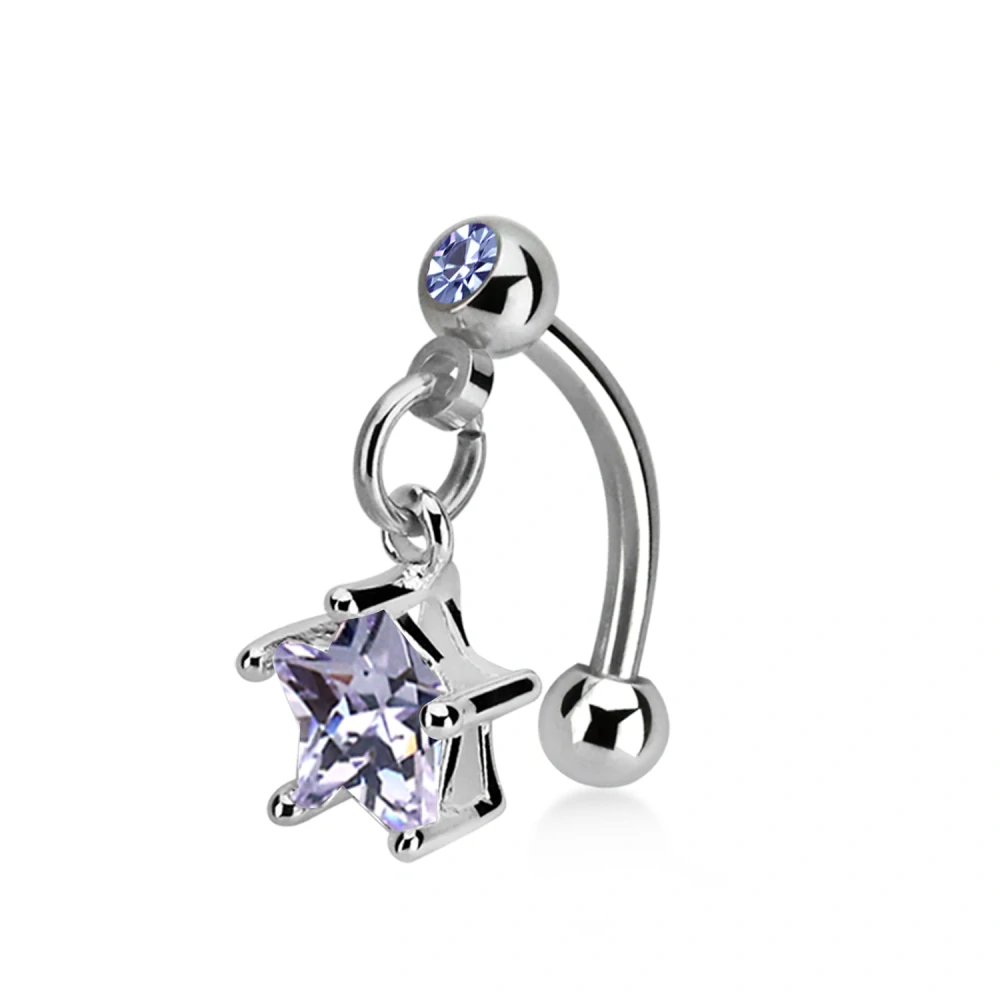 Originální piercing do pupíku s motivem hvězdy v různých barvách.