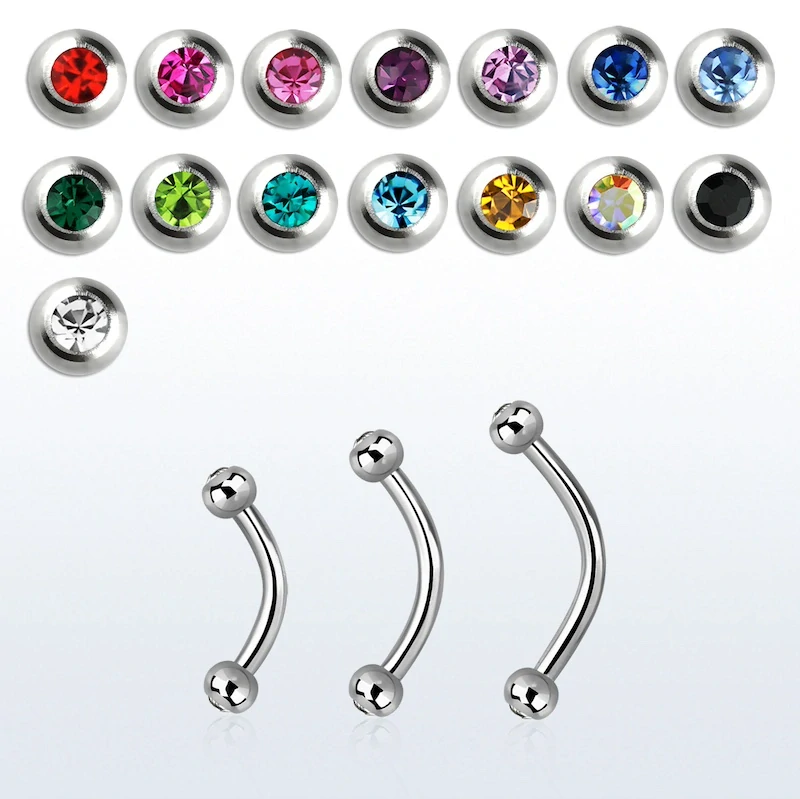 Banánek s kamínkem (curved barbell) po obou stranách v různých barvách krystalu BNEJB25 InfinityPierceSkladem90 Kč/ ks