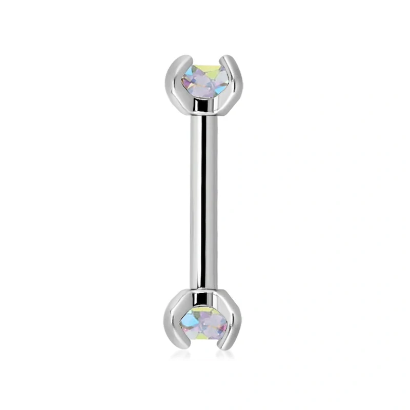 Piercingová činka rovná – stříbrná, duhové krystaly