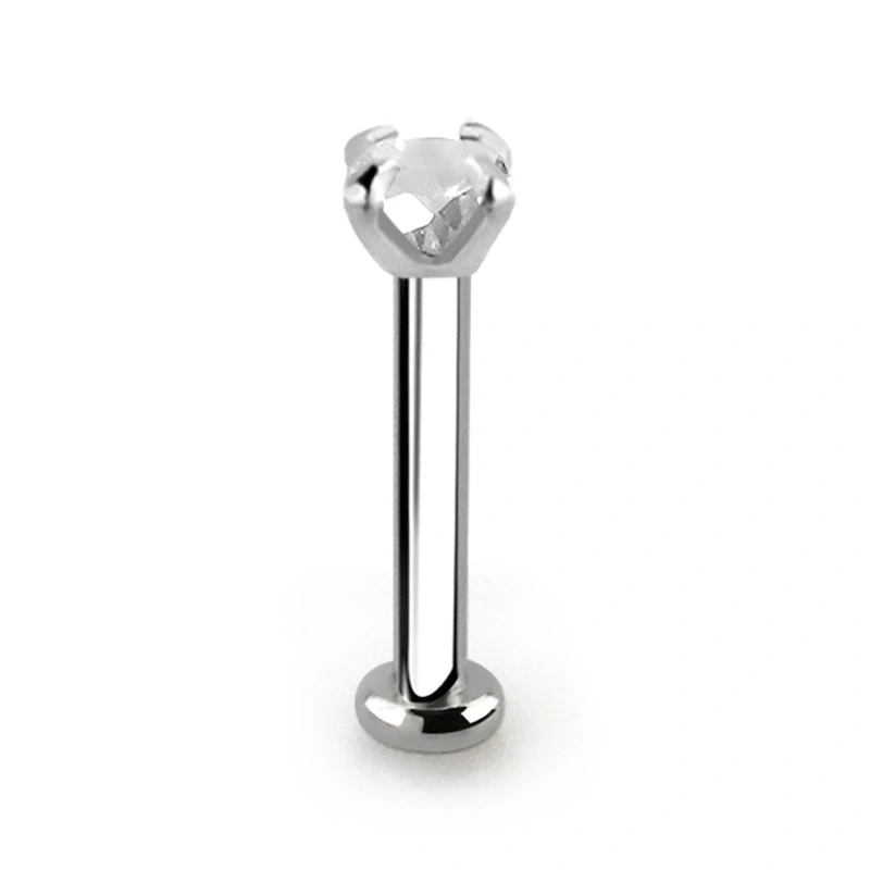 Labret z chirurgické oceli 316L s vnitřním závitem, s horním hrotem osazeným zirkonem
