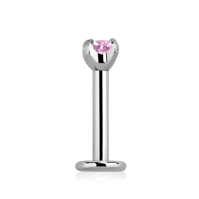 Labret z chirurgické oceli 316L s vnitřním závitem, s horním hrotem osazeným zirkonem
