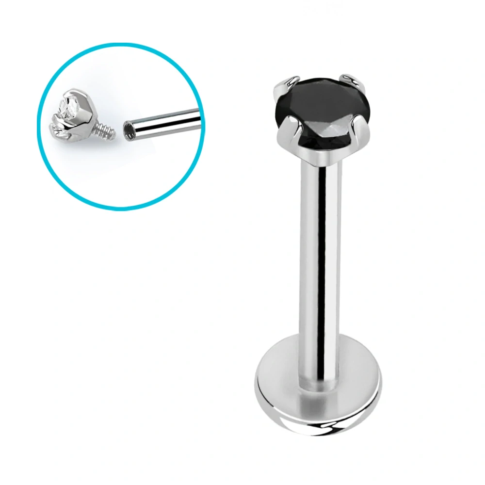 Titanový labret G23 s velkým různěbarevným zirkonem – variabilní délky, elegantní hypoalergenní piercing