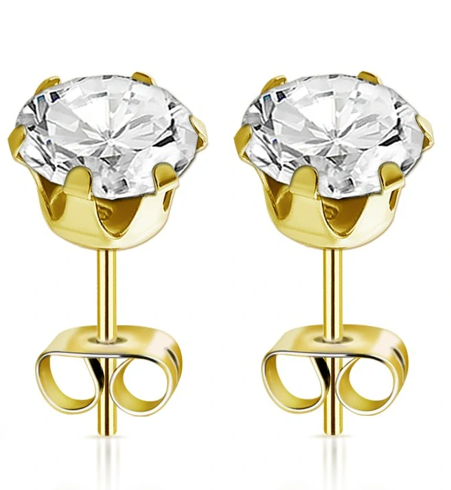 Zlaté piercing náušnice do ucha z chirurgické oceli s kamínkem – pecky