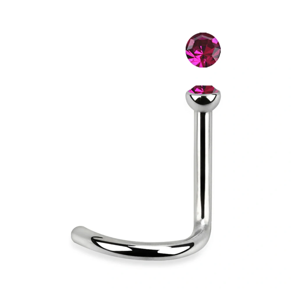 Zahnutý piercing do nosu z chirurgické oceli s kamínky v různých barváchSkladem54 Kč/ ks